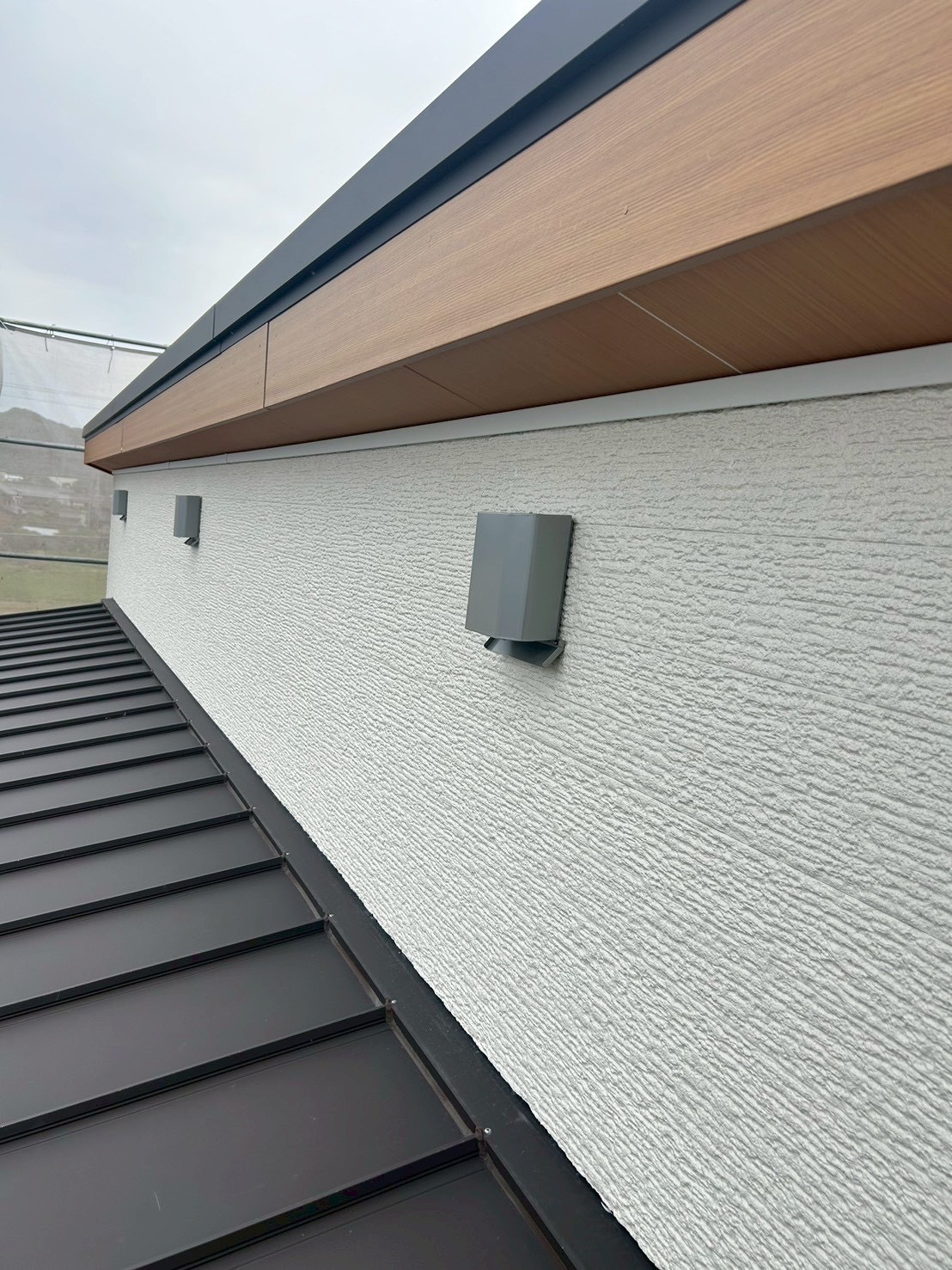 外壁はニチハ(株)のFugeシリーズ。 職人さんの腕が試される外壁です。本当にキレイに施工して頂きました。