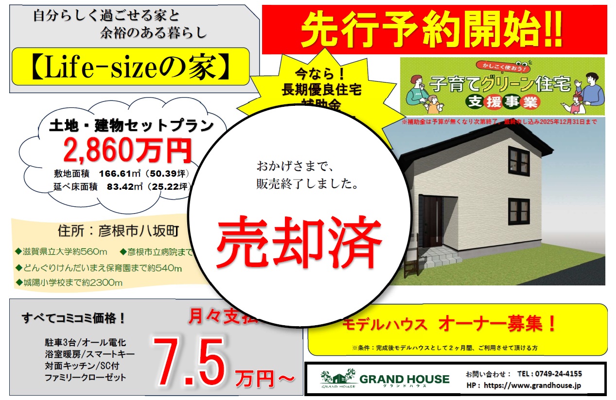 おかげ様で、八坂町モデルハウス「Life-sizeの家」が売却されました。