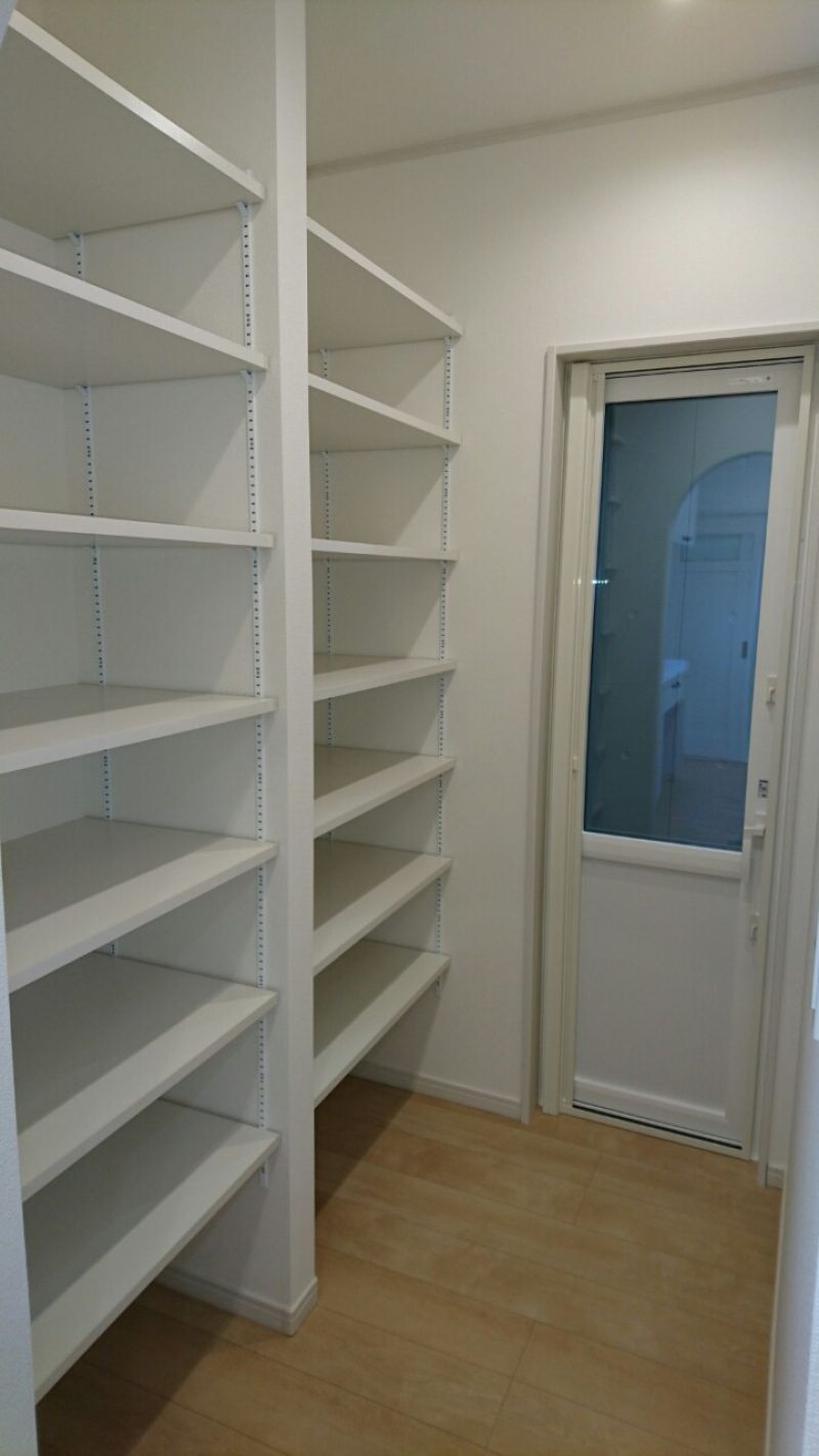 奥に勝手口があり、パントリーを通り、キッチンへ・・・