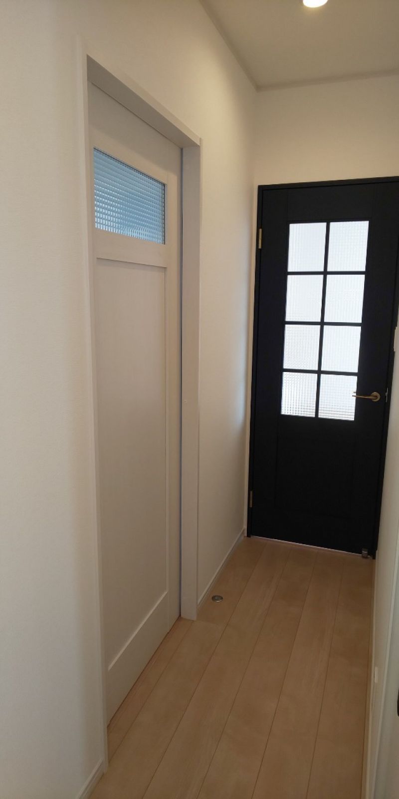 廊下からリビングに向かうと、洋風のドアがありおしゃれな雰囲気です。