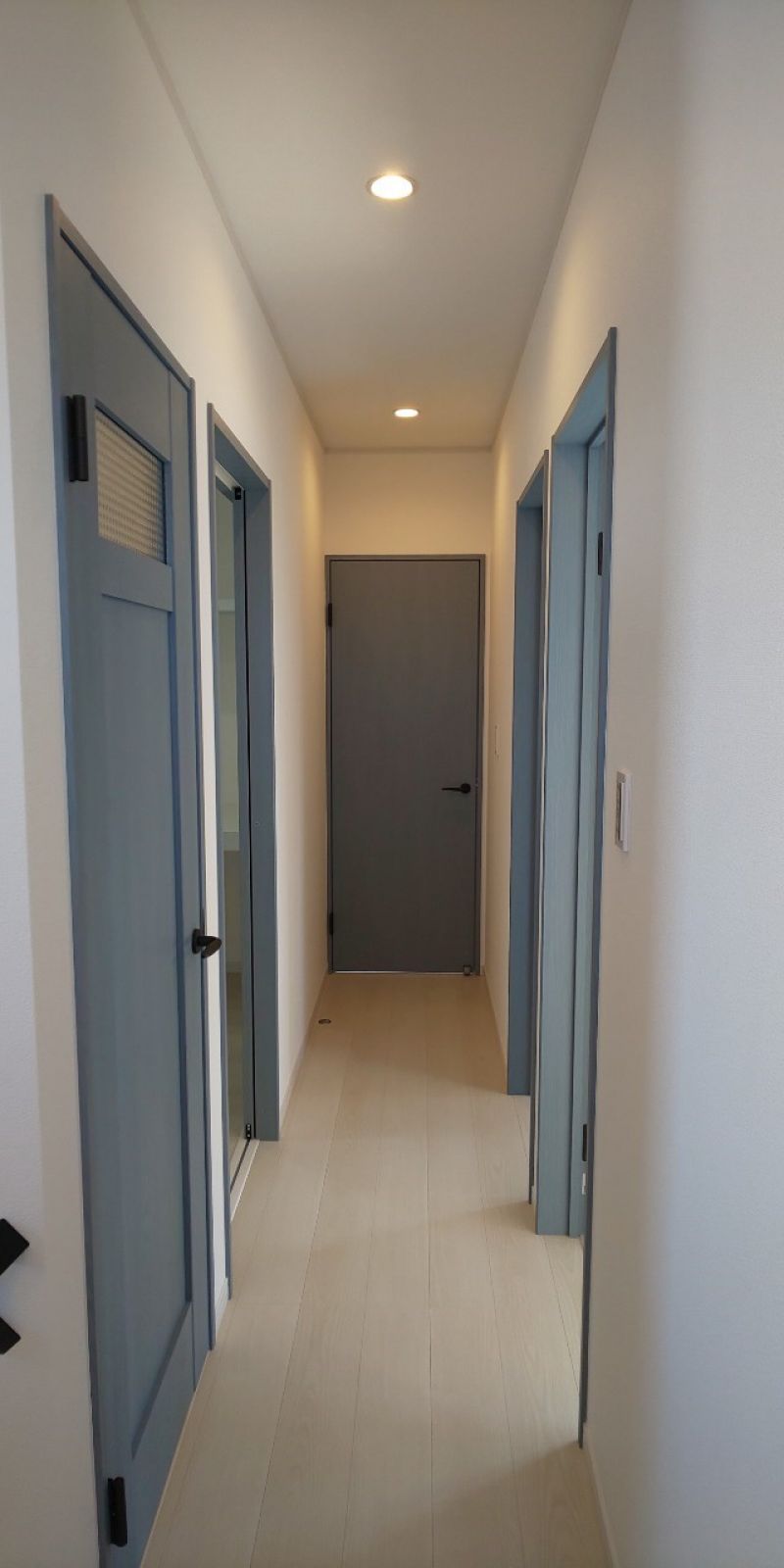 二階のプライベートスペースは、扉や床の色を変えてカジュアルにしました。